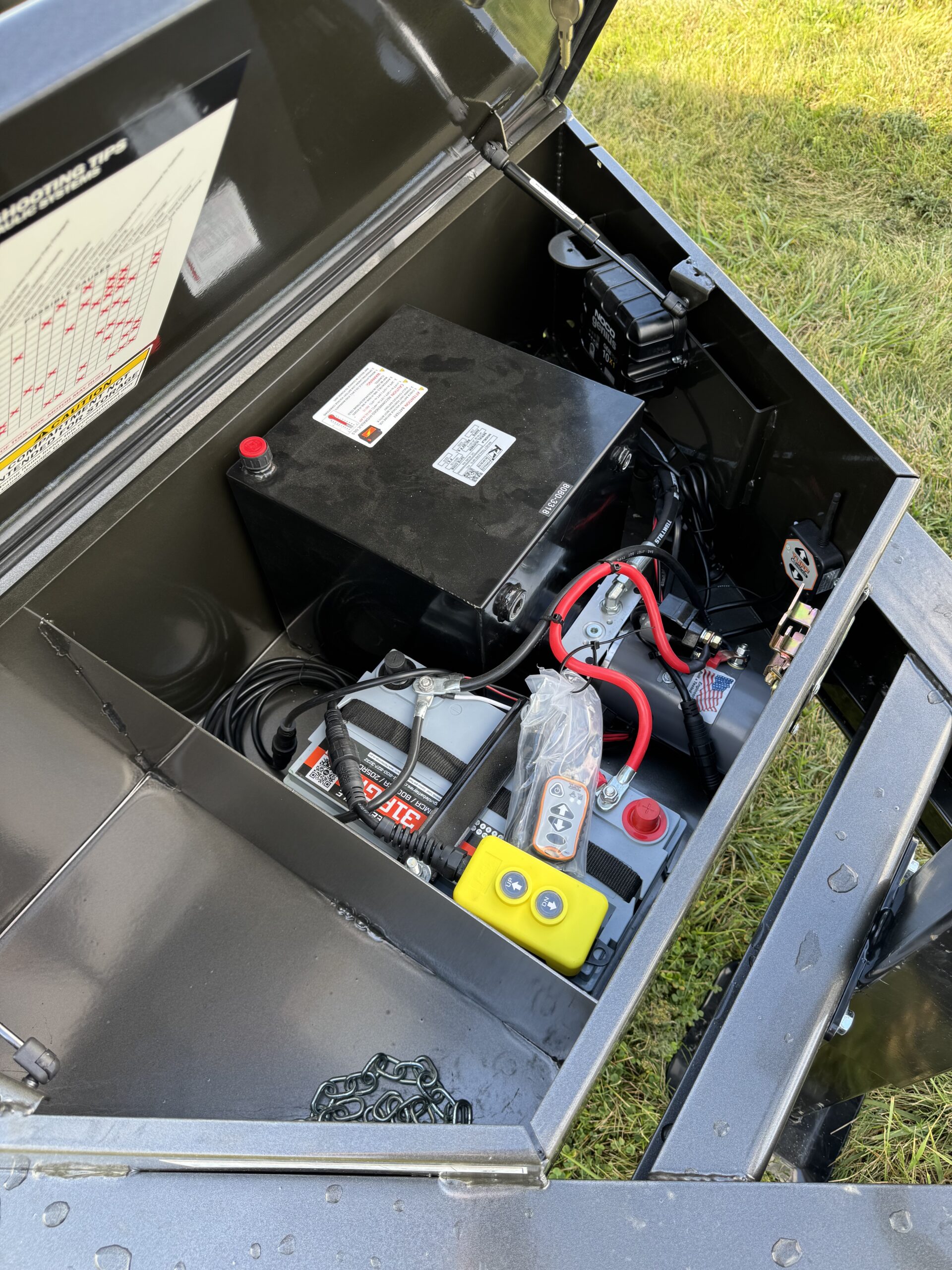 With an 8” I-beam frame for durability and a KTI hydraulic pump housed in a heavy-duty toolbox, the DTX is built to last. A NOCO® onboard battery charger ensures reliable power, while the standard tarp kit keeps loads secure. Available with a 16,000 lb. GVWR, twin 8K electric brake axles, and lengths from 12’ to 16’, the DTX is ready to handle tough jobs.