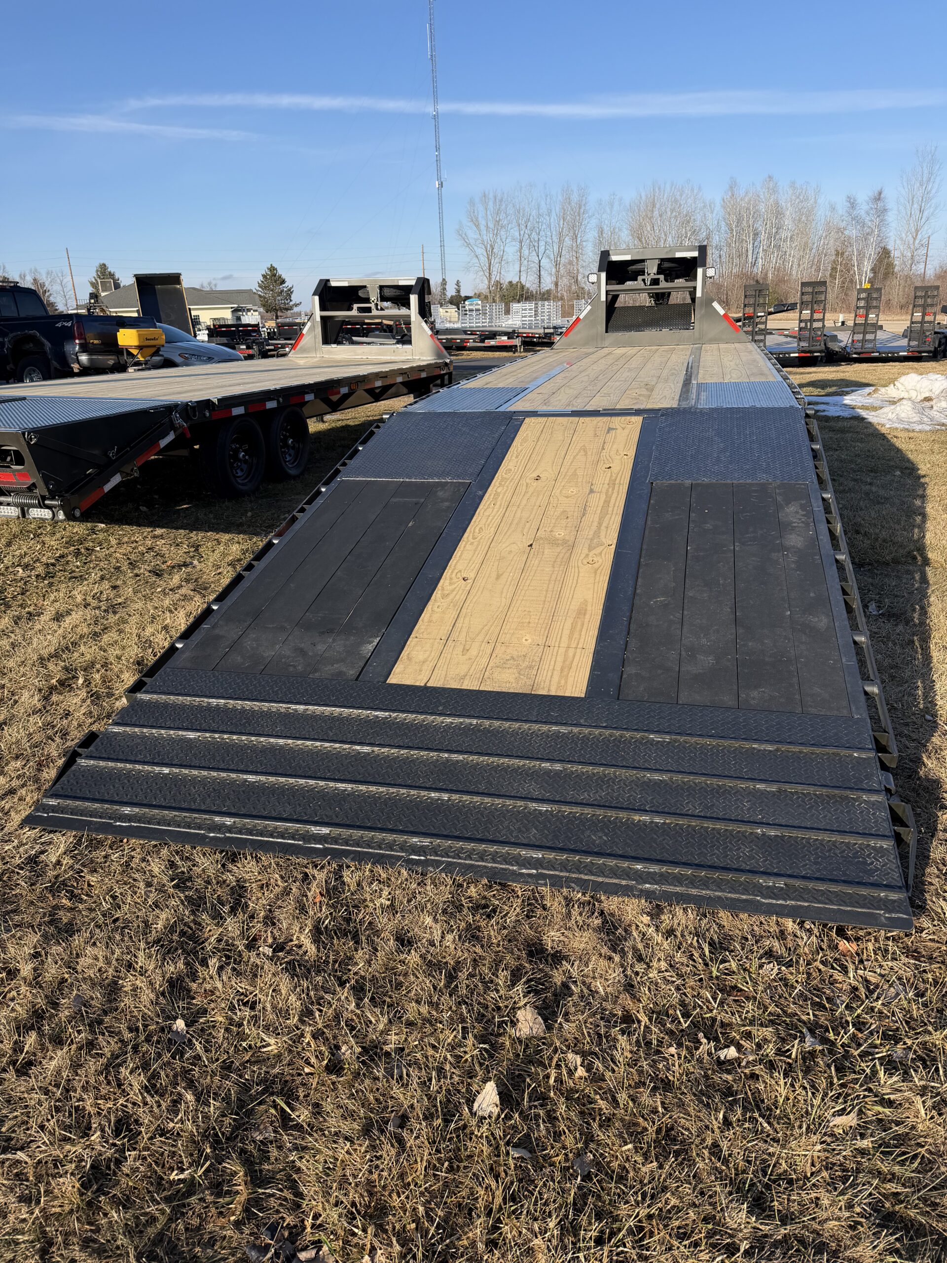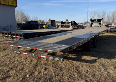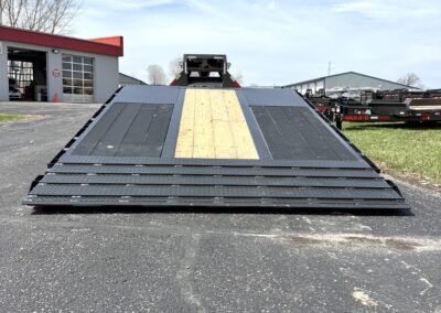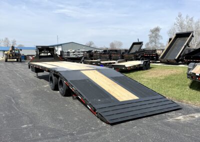 The YDX Hydraulic Dovetail Flatbed is the ultimate push-button heavy equipment hauler. No ramps to deal with, plus extra loading space on the dovetail makes it ideal for farm equipment, bales, or other heavy loads.